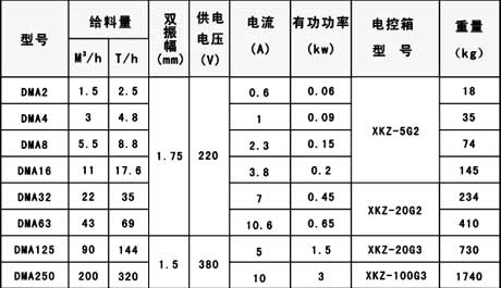 DMA系列電磁振動(dòng)給料機(jī)參數(shù)表