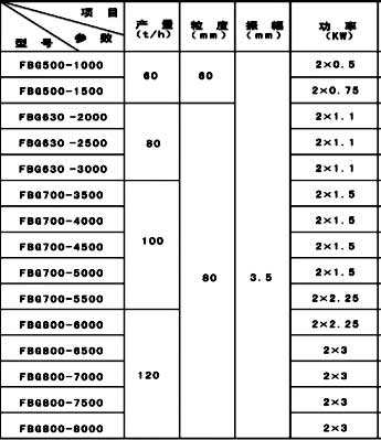 FBG系列封閉型變頻調(diào)速振動給煤機主要技術(shù)參數(shù)表